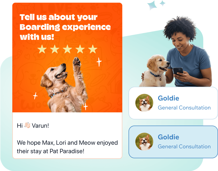 With our online scheduling software for pet groomers, you can offer seamless appointment booking to your customers while minimizing cancellations with automated reminders. Our WhatsApp booking software for pet salons makes customer communication effortless, allowing you to send confirmations, reminders, and promotional offers directly.